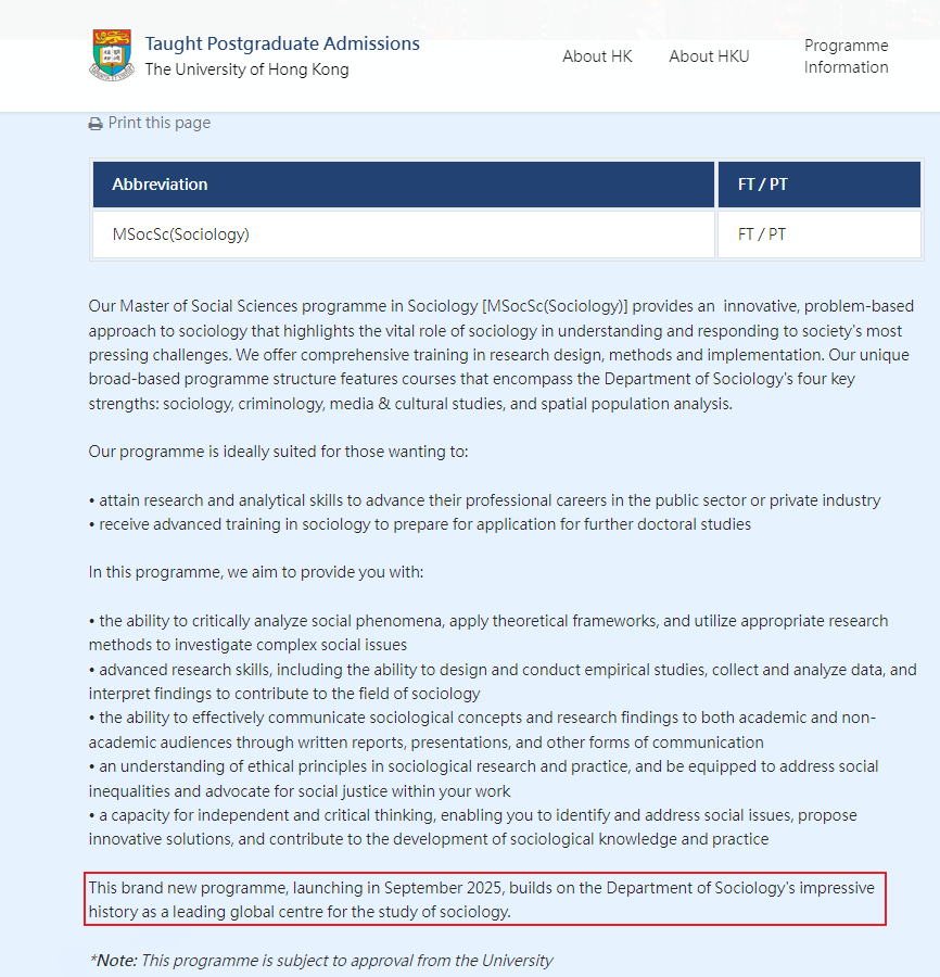 但是,摆渡学人在以往很多文章,都提及过一点,无论一个系所要设置何种课程,都根本无法离开的就是“人”,因此摆渡学人的推文才会经常介绍那些“教授”、“项目主任”和“研究集群”。基于此逻辑,在港大社会系的人员增设并不大的情况下,“社会学硕士”的教员也离不开当下的研究集群以及这个系所的专长所在。假设线月有可能会开放申请的话,那么我们现在的申请准备就无从下手了吗?不会,绝对不会!诸位同学,还是可以先阅读摆渡学人关于港大社会学系的分析文章,逐个研究人员的简历以及发表清单乃至于所主持的项目都可以去提前去深度了解,体会港大社会学系的研究特色。甚至,MCCC的课程列表,以及犯罪学的课程列表,也很可能未来会成为港大“MA Sociology”的一个部分。